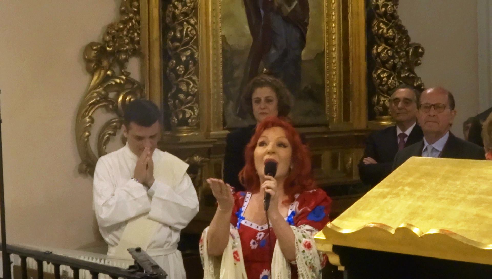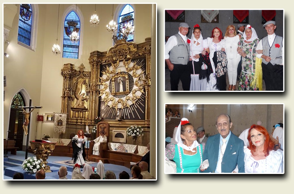 Mari Pepa asistió a la celebración del día de “los castizos”en la iglesia de La Paloma, cantando la salve a la Virgen y unas canciones a los asistentes en el patio de la parroquia.