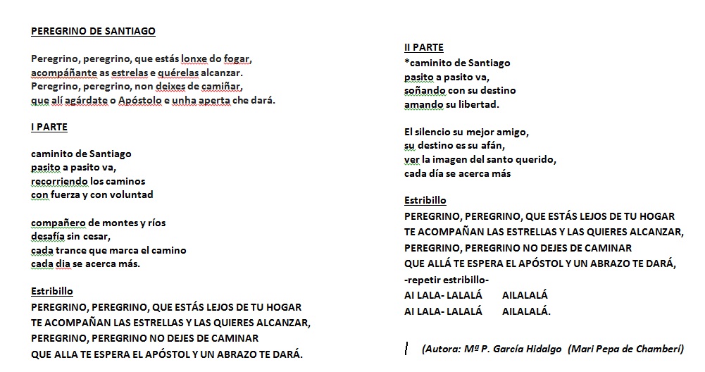 Letra y partitura del «PEREGRINO DE SANTIAGO»:
