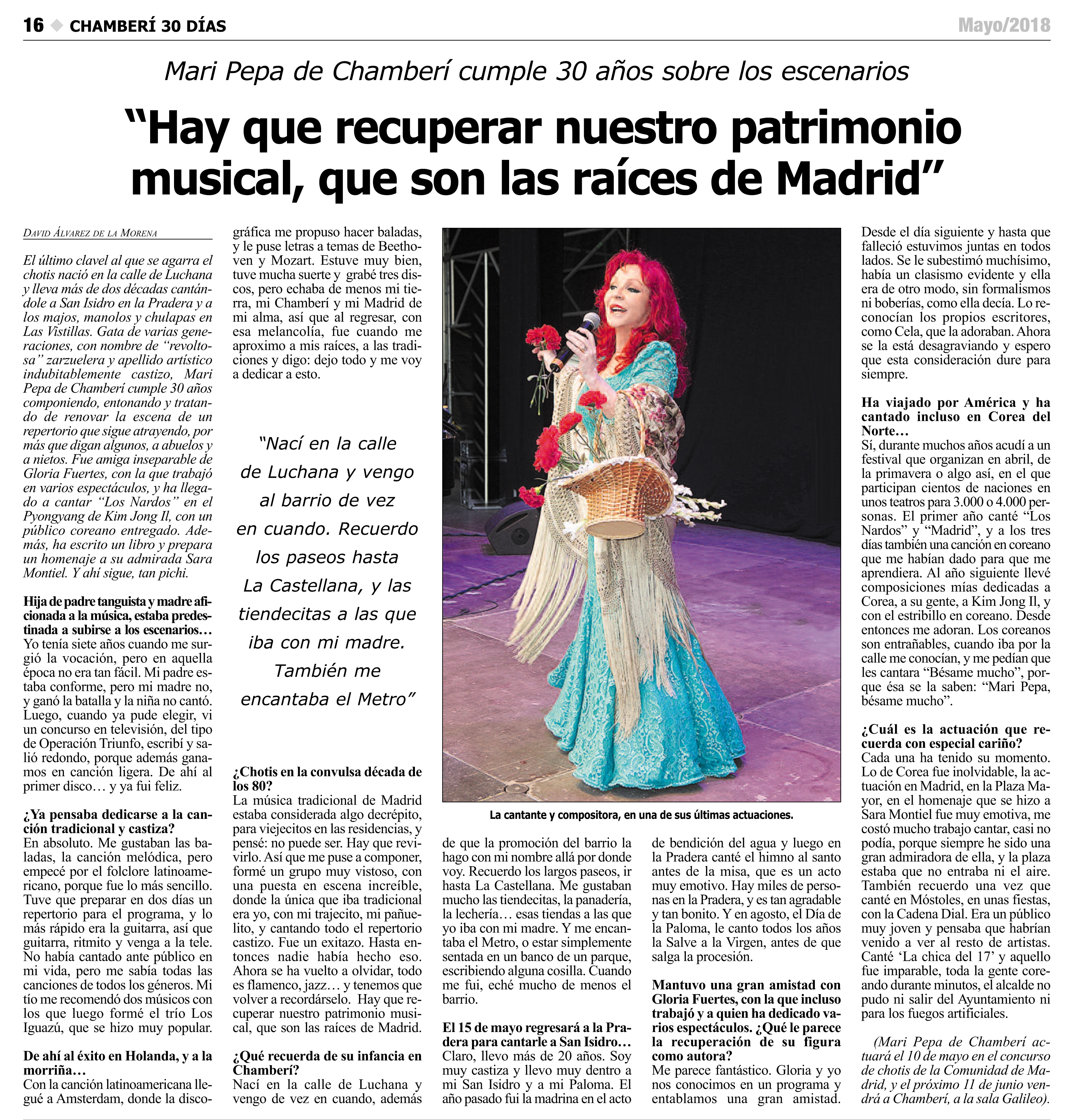 Mayo / 2018 – Entrevista en CHAMBERÍ 30 DÍAS