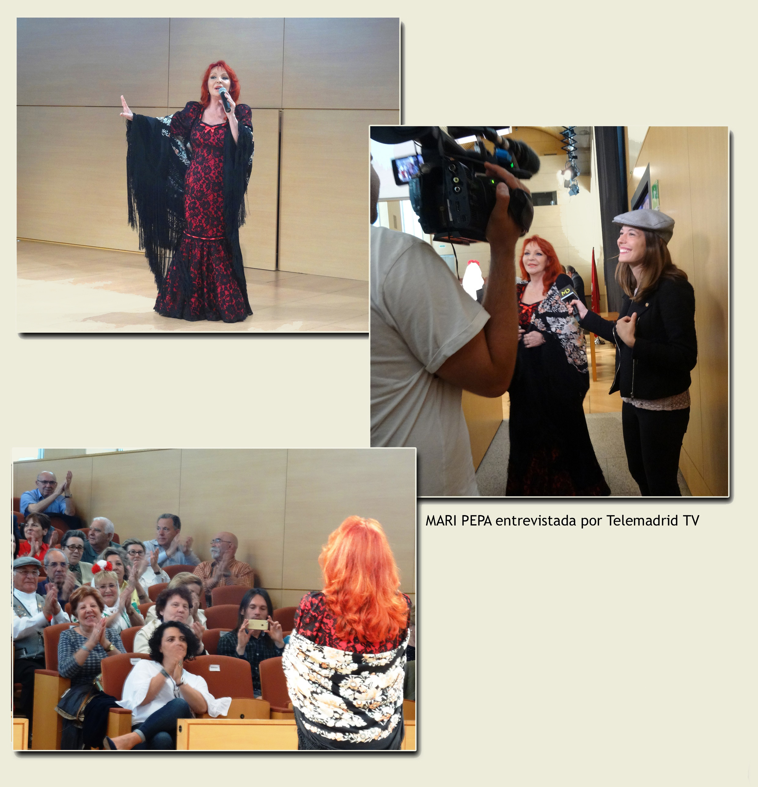 Acompañada al piano por Miguel Tubía, ofreció su espectáculo cuajado de las canciones más populares del cancionero madrileño  y no faltó el chotis “bollitos de leche” ( compuesta por Mari Pepa y  Gloria Fuertes). El público participó cantando con Mari Pepa.