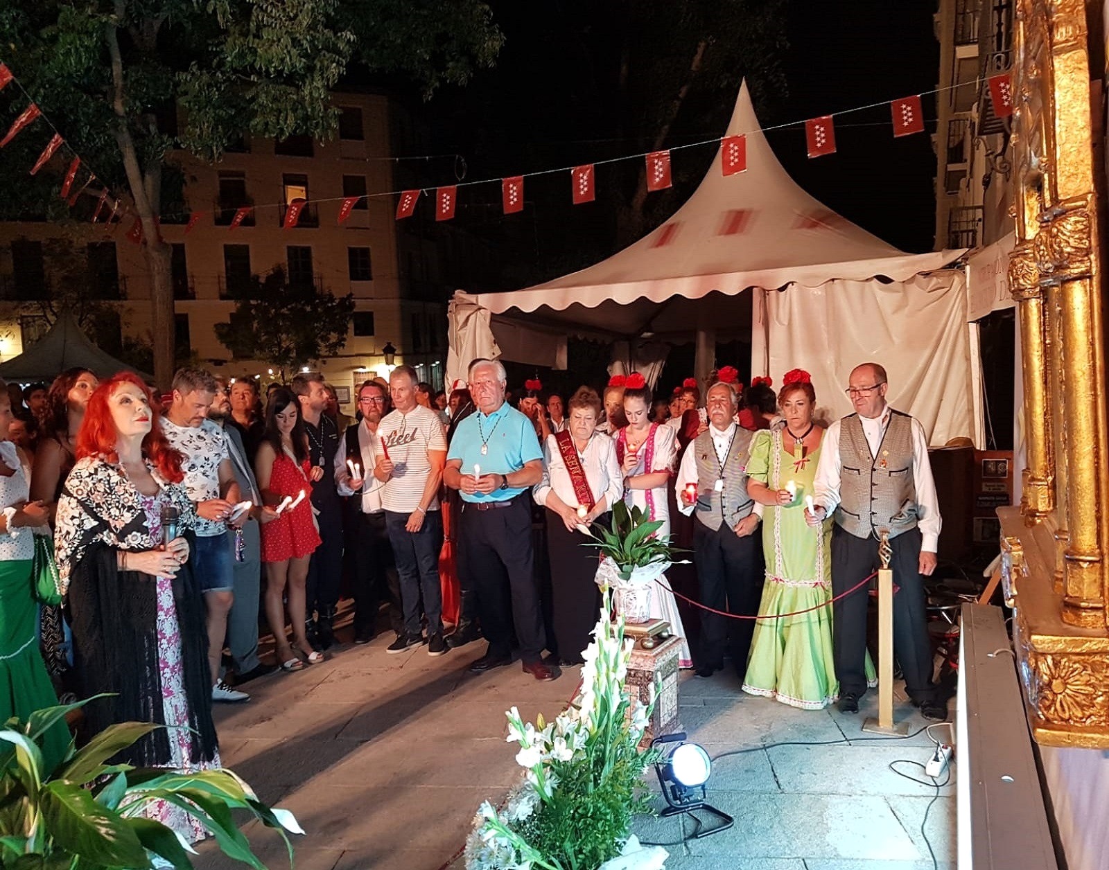 A las 12 de la noche, MARI PEPA estaba cantando la Salve en la Plaza de la Paja en Madrid, ante el lienzo de la Virgen de la Paloma, que la Agrupación Castiza “El orgullo de Madrid” expone cada año para ser venerada.