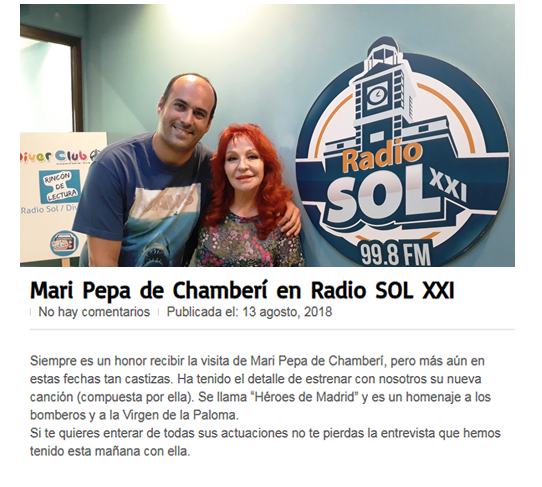Con motivos de los conciertos y eventos en los que actuará Mari Pepa, Víctor Alfaro de RADIOSOL XXI le hizo una entrañable entrevista.