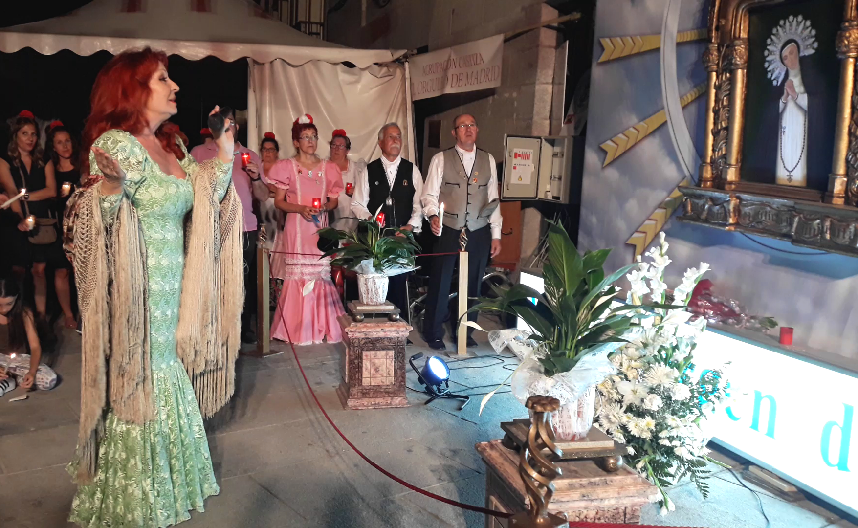 Mari Pepa cerró las fiestas castizas de la Paloma, cantando la Salve ante el cuadro de la Virgen, agradeciendo al público su asistencia apoyando este evento cada noche.